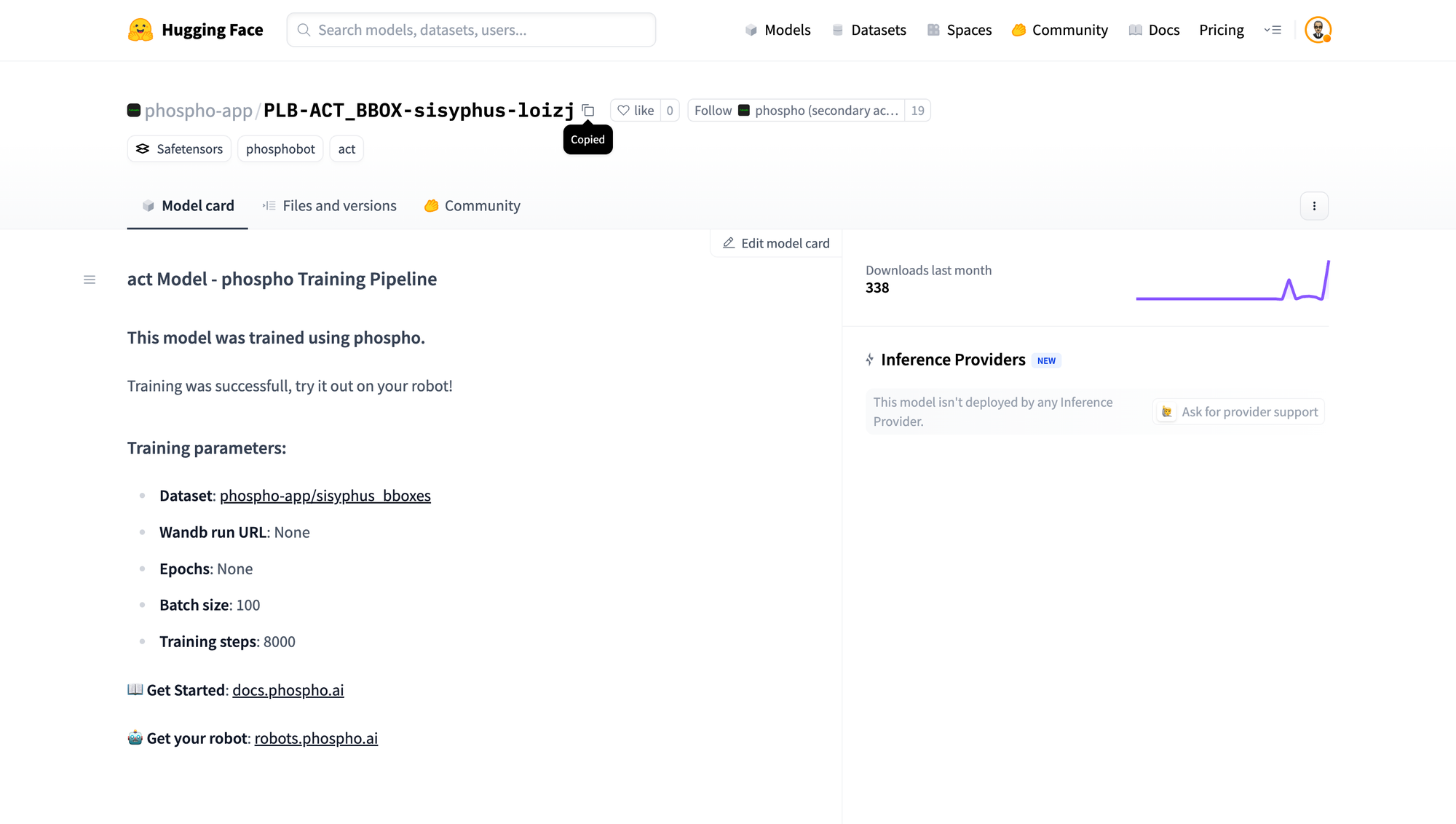 The training process created a new model on Hugging Face. Find this new model, copy its ID, and paste it into the Model ID field on the AI Control page.