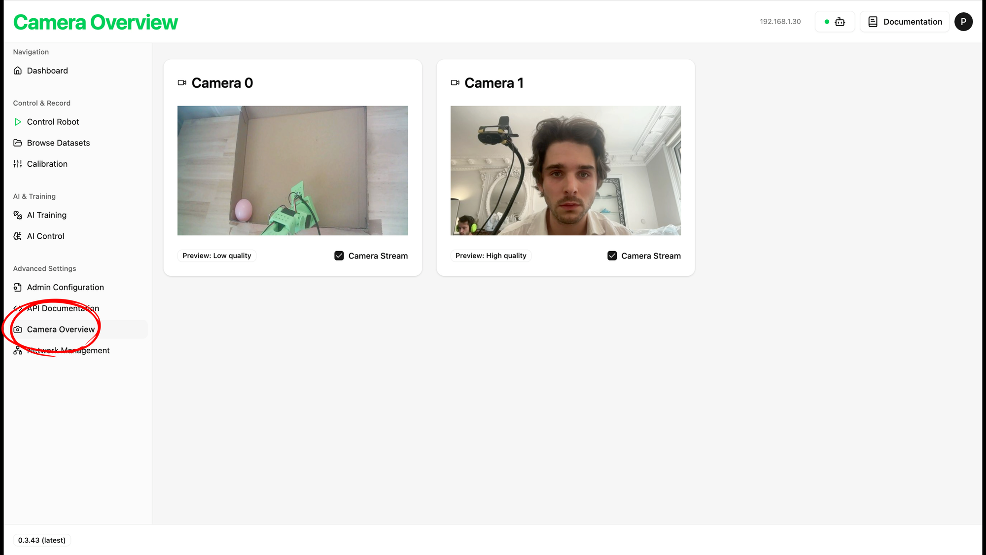 - Connect Hardware: Ensure your robot and cameras are plugged into your computer.