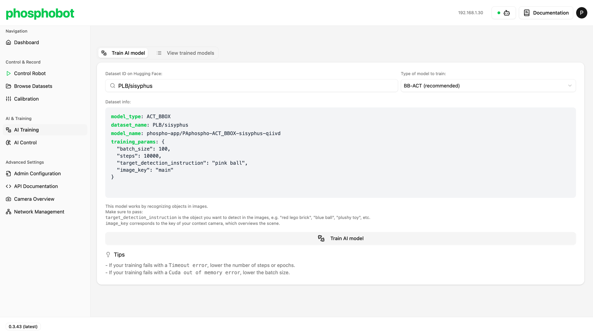 To train and test BB-ACT, you'll need to install phospho on your computer. If you haven't installed it yet, you can follow our quick-start guide in the official documentation.