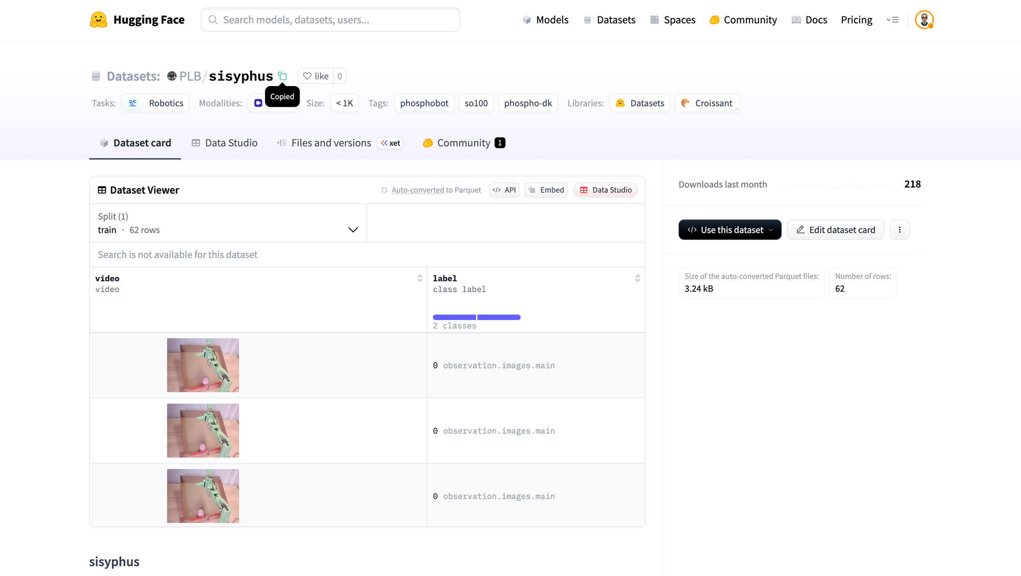 If you're using phosphobot, your dataset is automatically uploaded to your Hugging Face account. Otherwise, you need to upload it yourself.