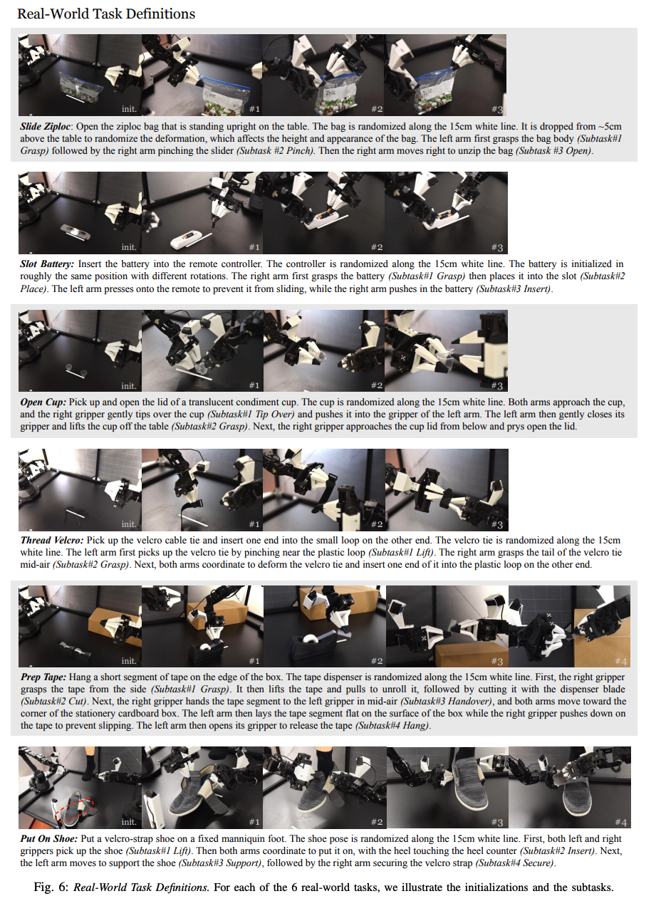 - Compounding Errors: Small errors in predicted actions accumulate over time, pushing the robot into states outside the training distribution, leading to task failure. For example, a millimeter-level error in grasping a velcro tie can derail subsequent insertion steps.