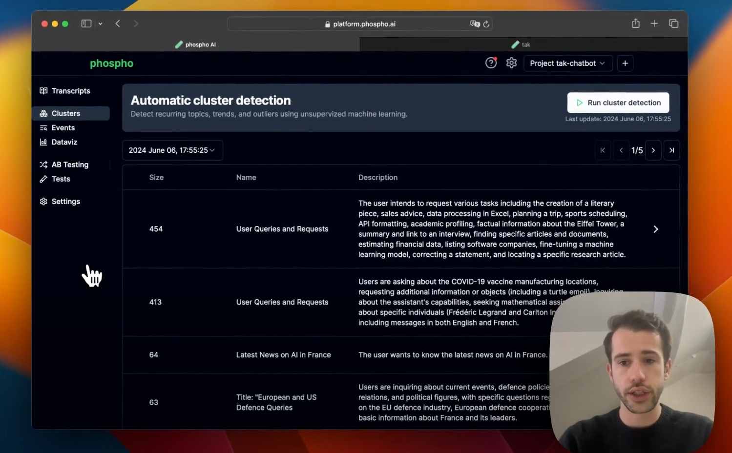 The best way to see how Phospho can do this with your AI product is with our guided example walkthrough here.