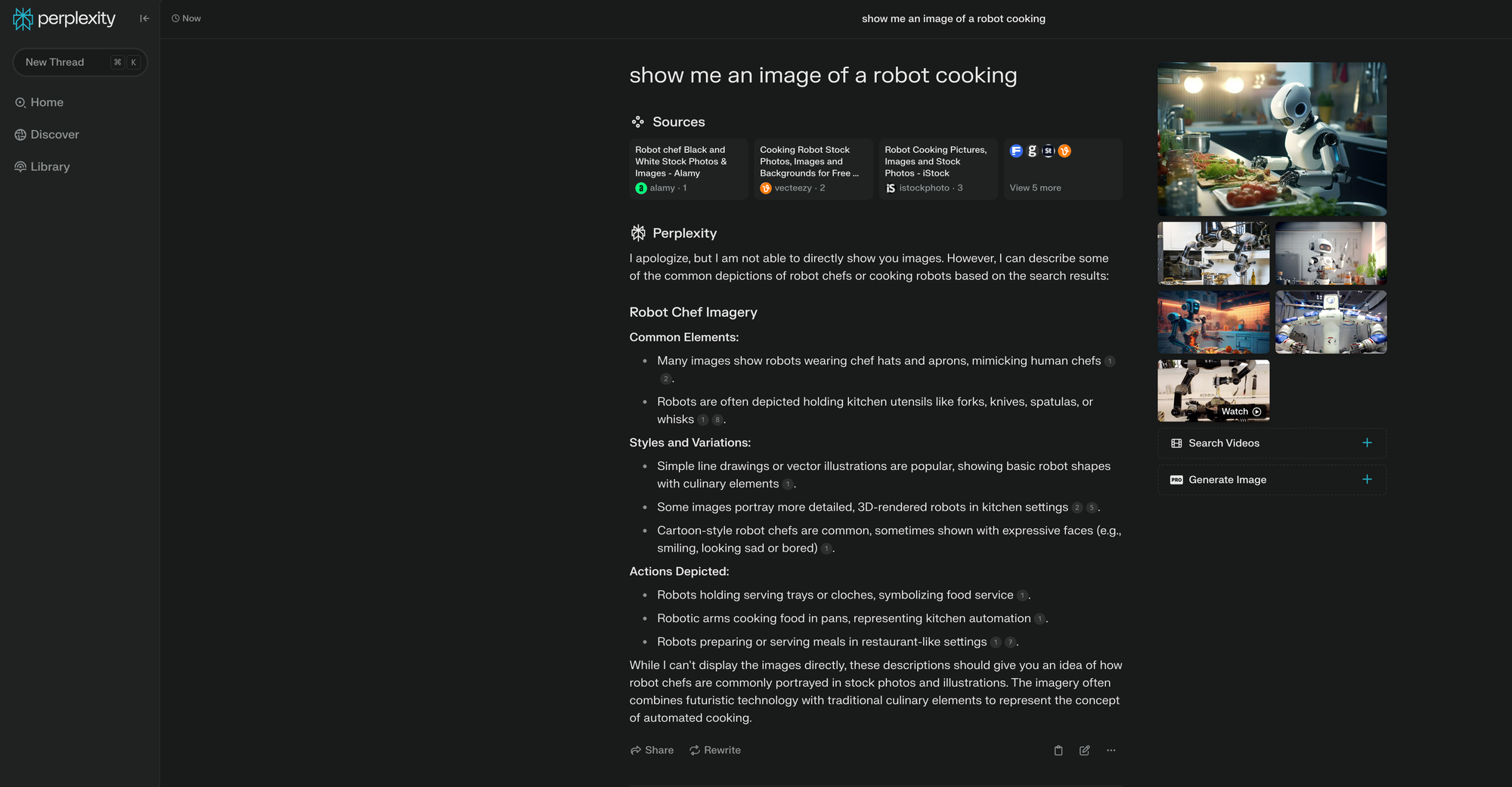 Like Tak, Perplexity supports image search through a conversational interface and uses LLM to consolidate information and generate new content.