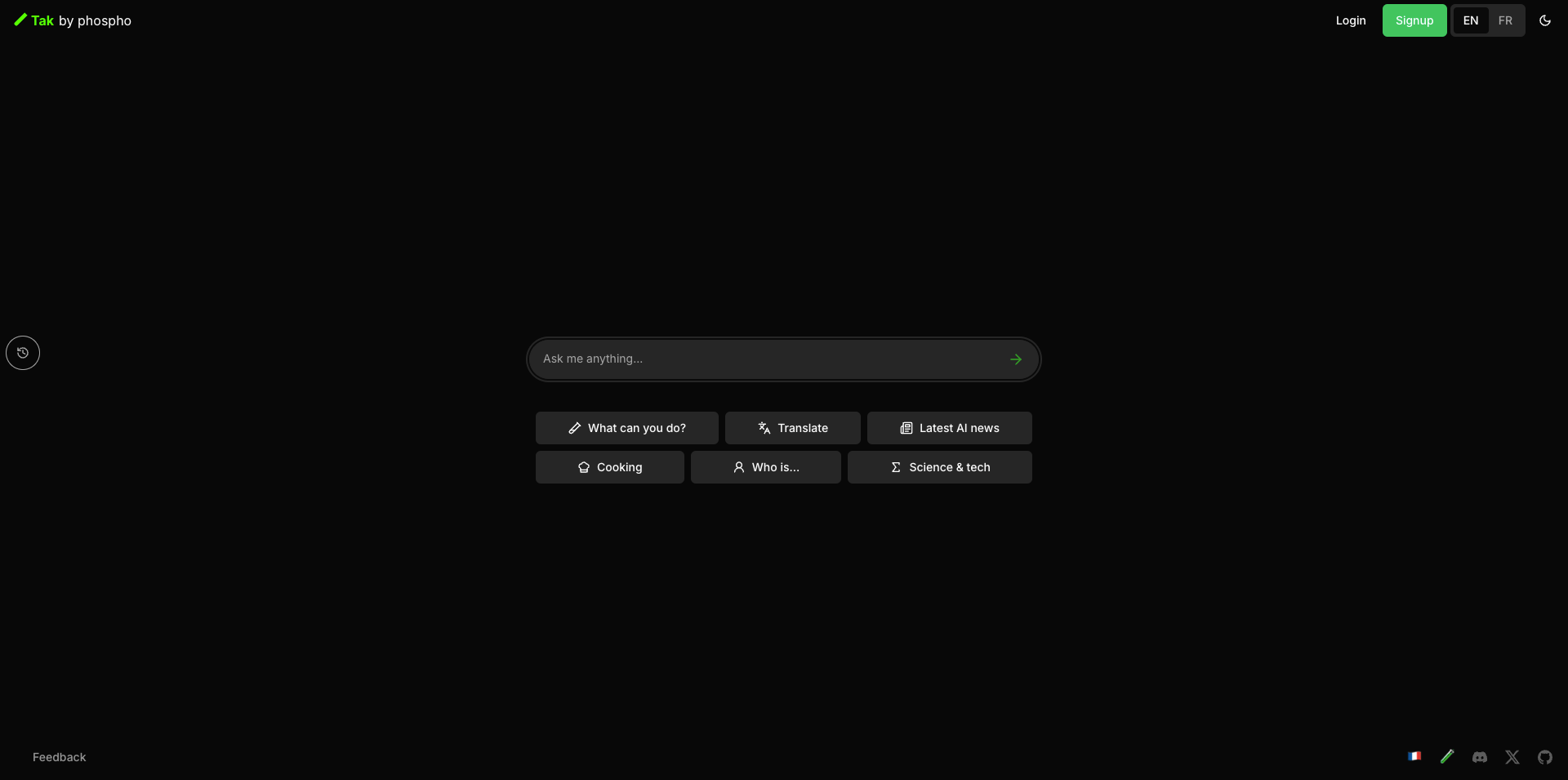 Tak is the best Perplexity alternative, offering personalized search results that improve with use. It’s free, accessible, and suited for various use cases, from academic research to everyday queries. Learn how Tak's advanced features, powered by Phospho, make AI search more effective.