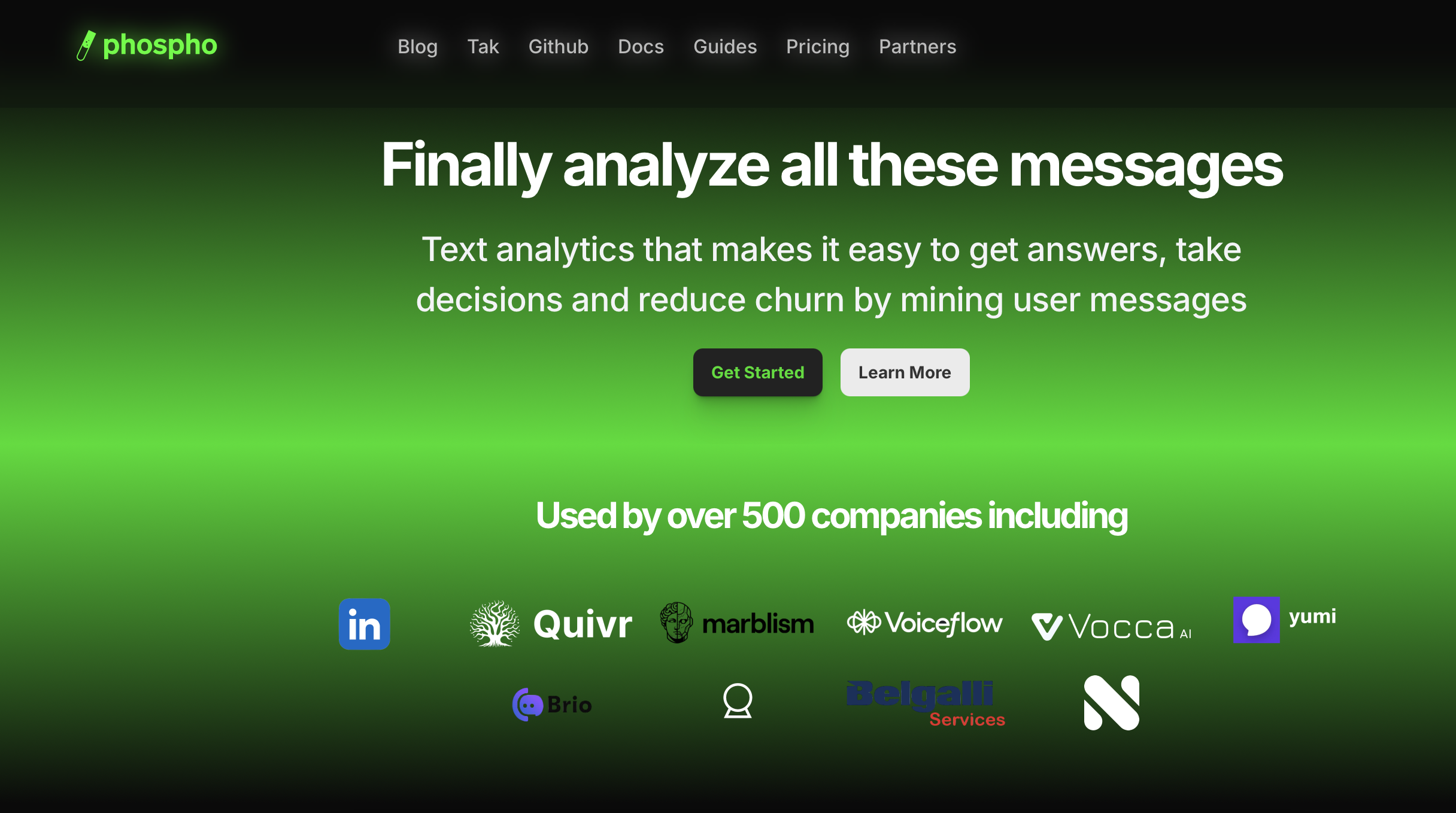 Phospho provides AI start ups along with other companies a platform to leverage Text Analytics and other AI resources for quicker product iterations and less churn.