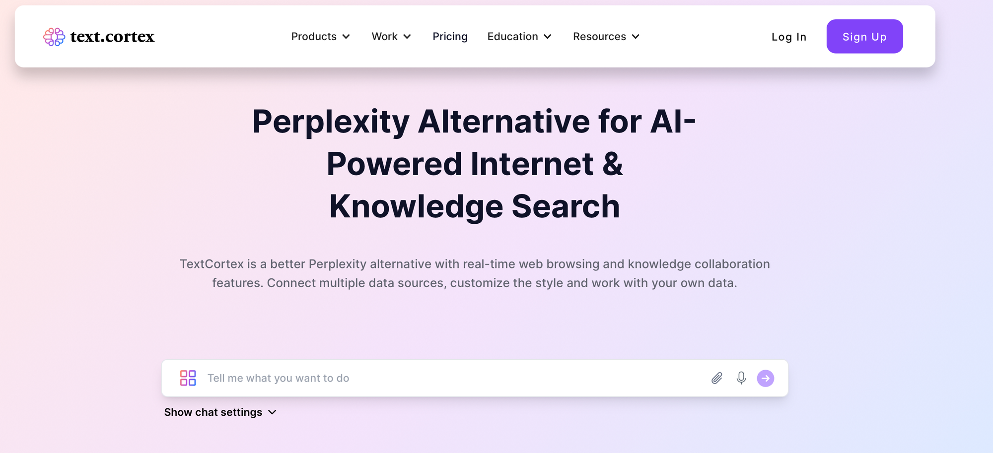 TextCortex is an AI writing alternative to Perplexity which supports document summarization and creative or corporate writing tasks.